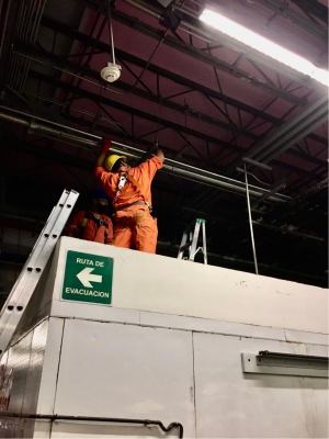 Instalación de detectores de incendio Instalación de detectores de humo en piso de ventas de Bodega Aurrera Expres e instalación de detectores laser, detectores de